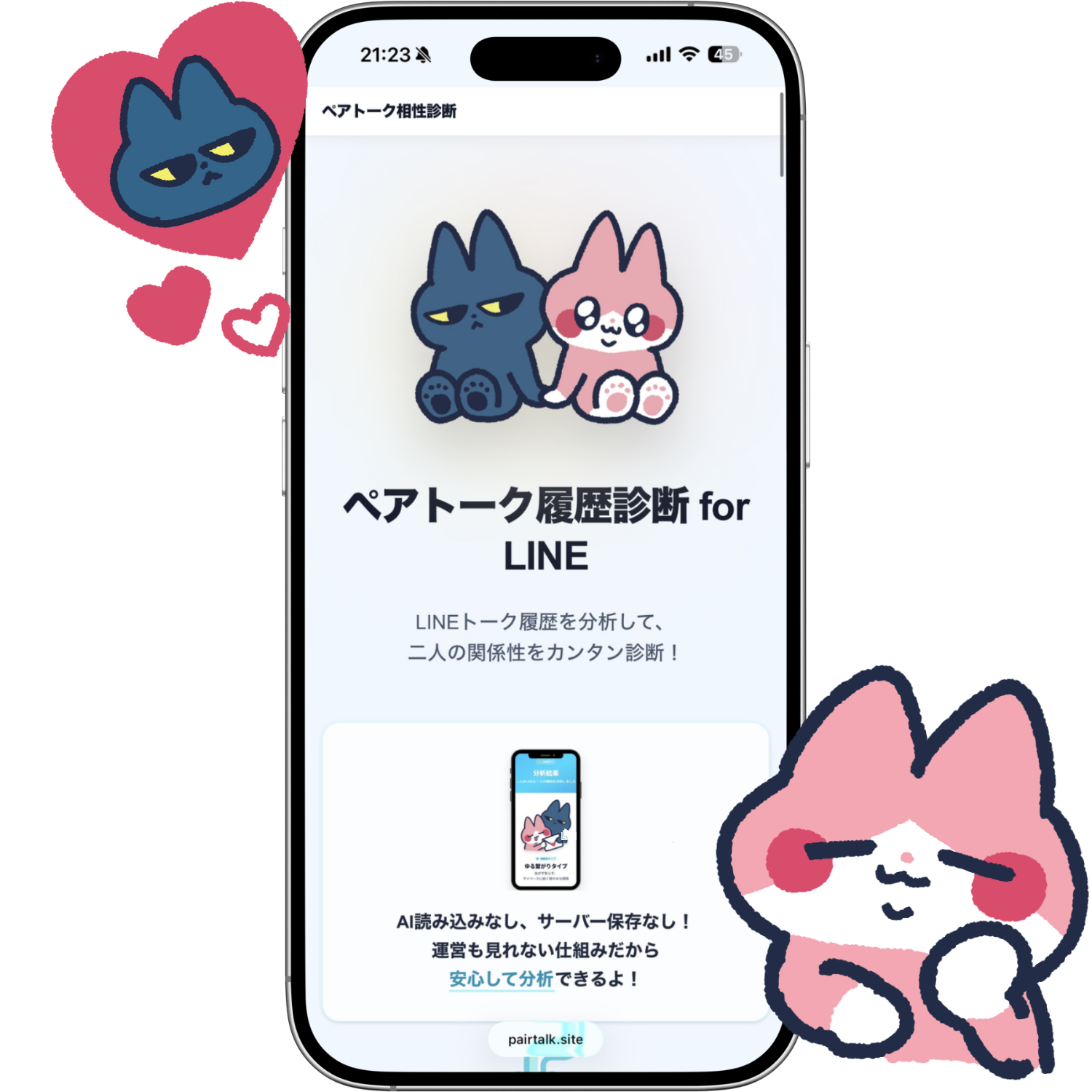 二人のトークをカンタン診断!AIやサーバー保存なしなので安心できる!友達や恋人、家族と盛り上がろう!