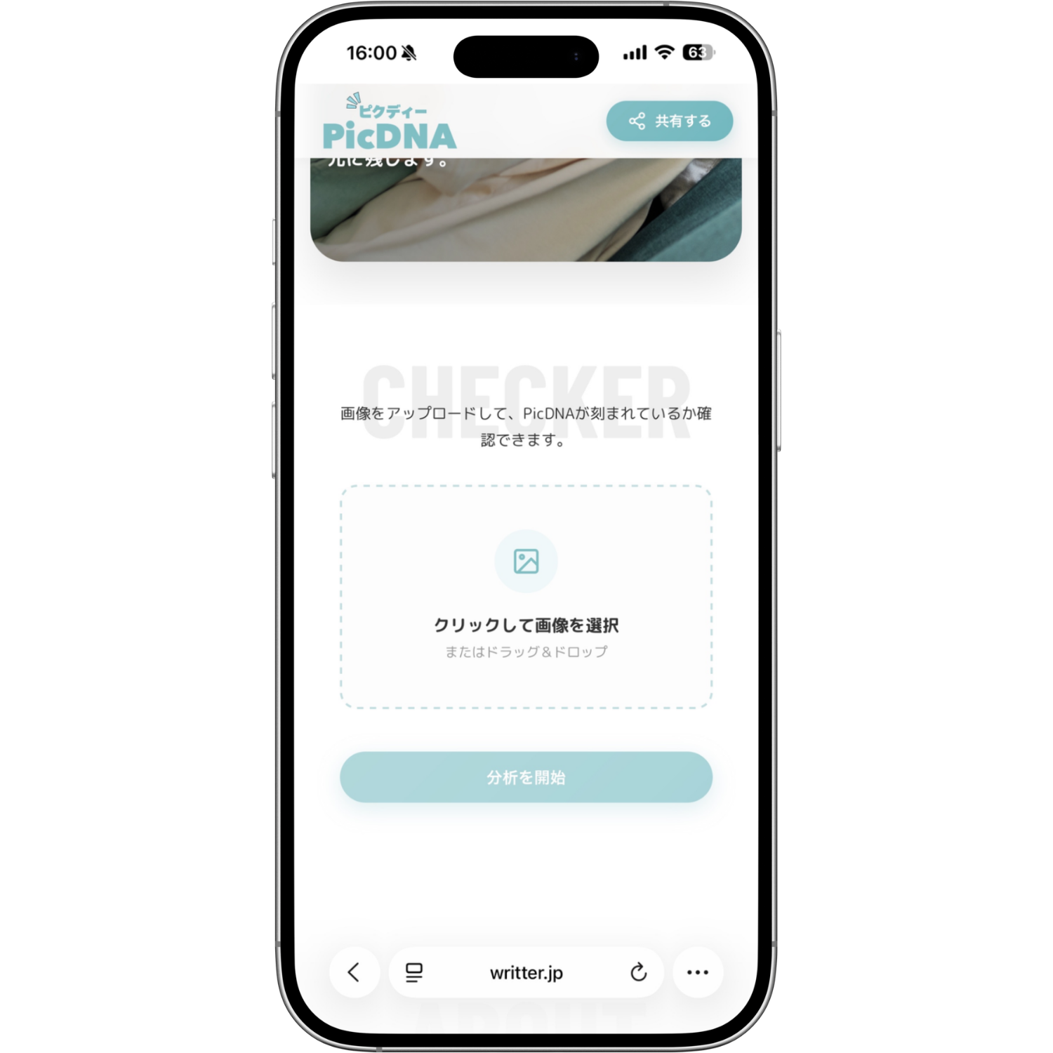 画像に刻印したPicDNAをスキャンできます。生成AI学習対策、および未管理著作物制定制度のために開発しました。