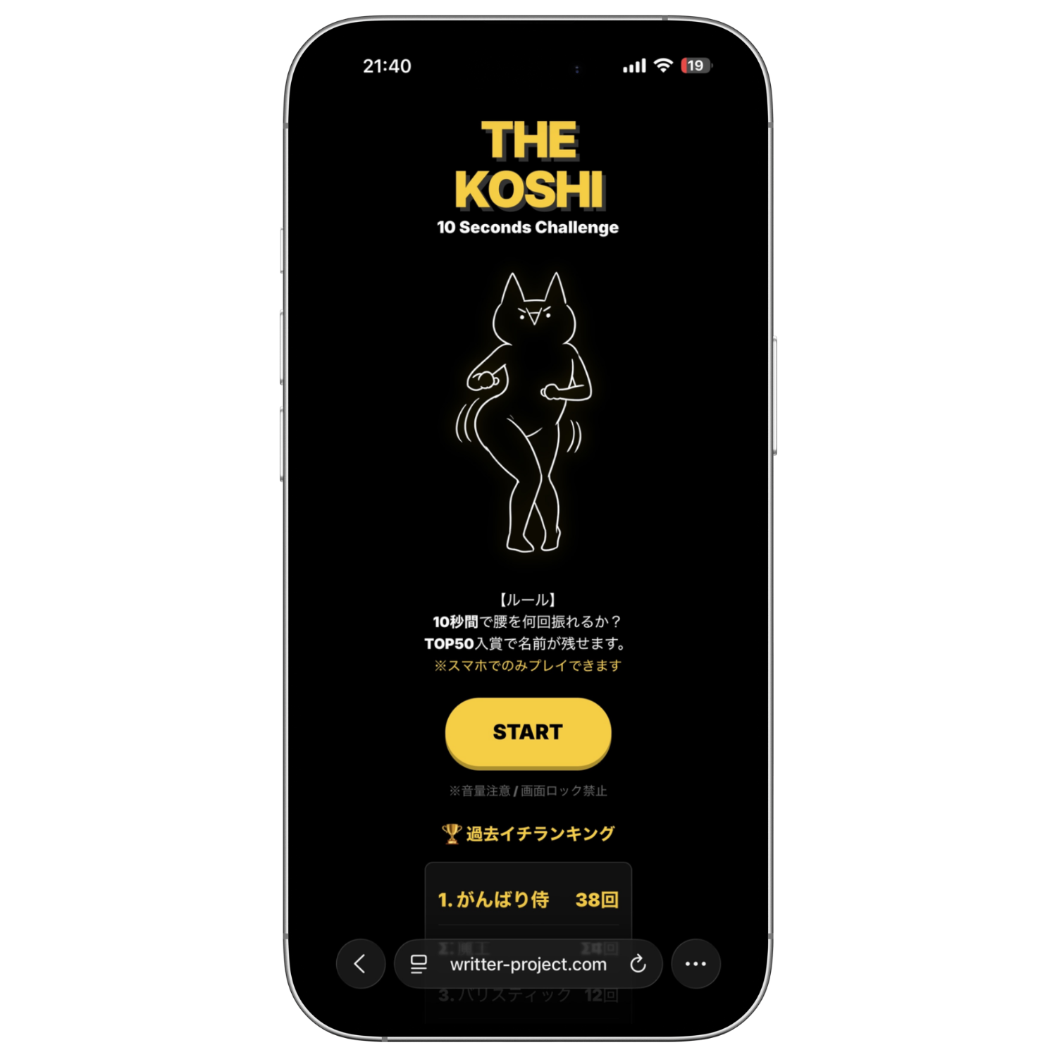 10秒腰振りチャレンジ スマホをポケットに入れて腰を何回振れるか?何故作ったのか、我々にもわからない。